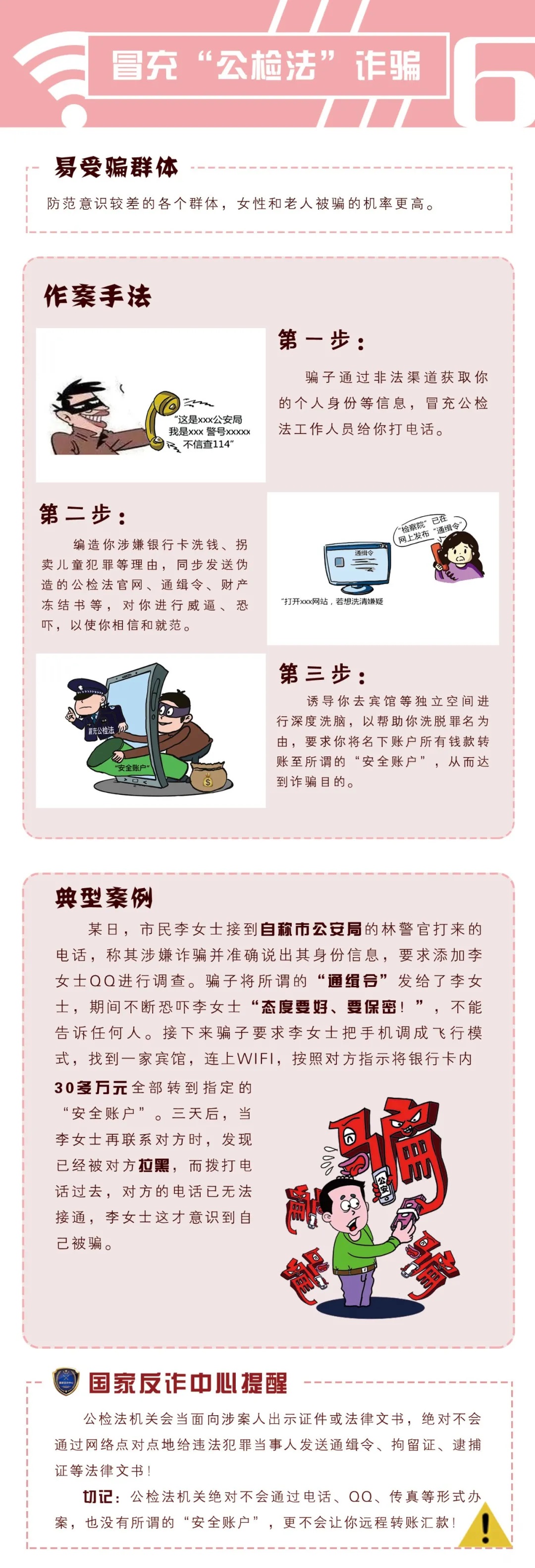 隨著社會和科技不斷進(jìn)步,詐騙分子的行騙方式也在“與時俱進(jìn)”。新型電信網(wǎng)絡(luò)詐騙既有對傳統(tǒng)詐騙花樣的“升級改造”,也有利用社會熱點(diǎn)問題設(shè)下的新騙局。本期,我們繼續(xù)為您揭露常見的“電信網(wǎng)絡(luò)詐騙”騙局。